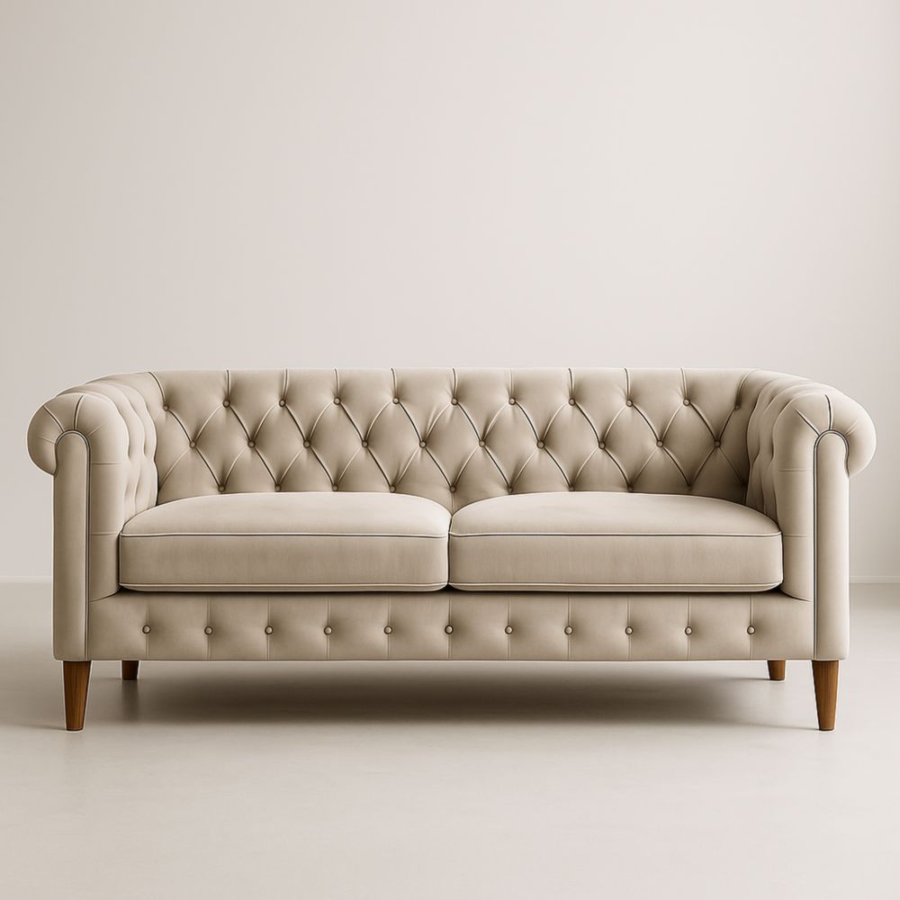 Canapé 3 places en polyester beige avec pieds en bois