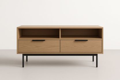 Meuble TV Bois Métal Longueur 120cm Chêne Clair