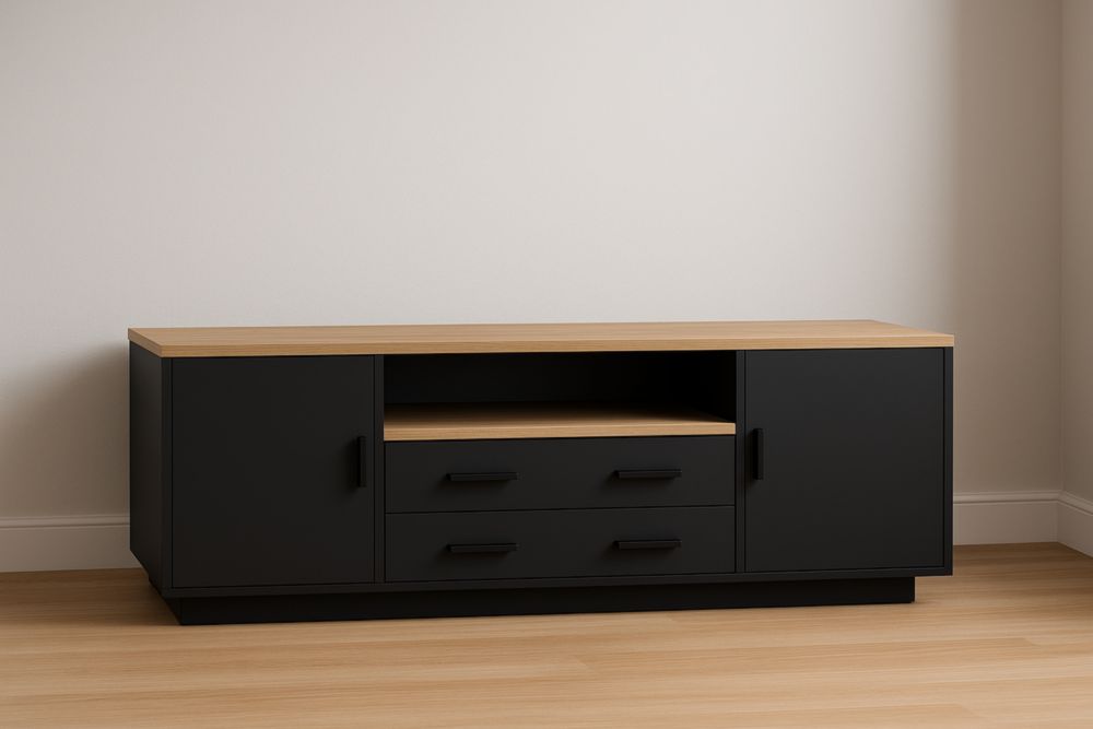 Meuble TV en bois MDF noir avec étagère et tiroirs